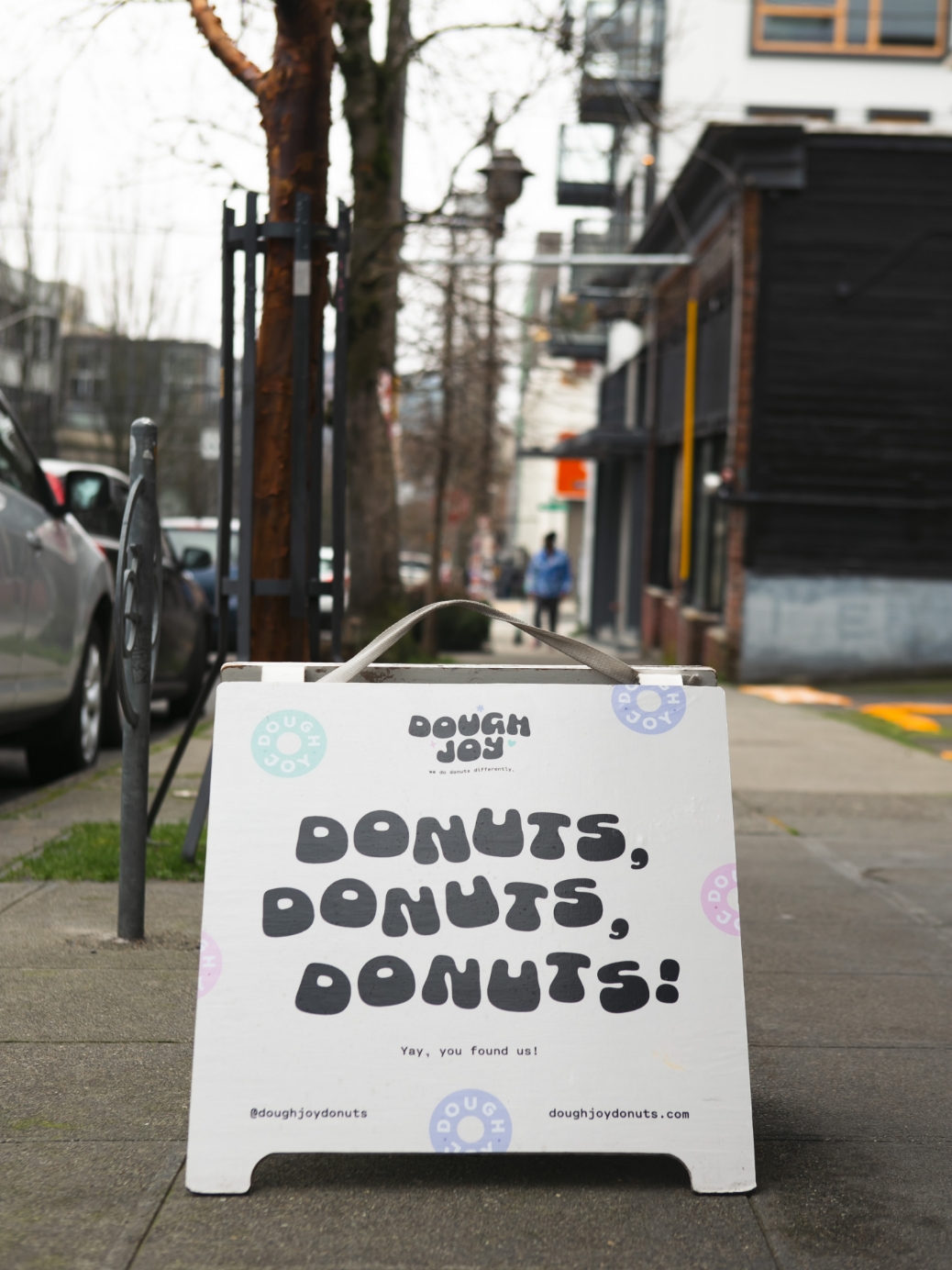Dough Joy began not that long ago, in May of 2021. We wanted to bring something fun, unique, and exciting to Seattle’s food scene, but we had no restaurant or baking experience – just a lot of ideas! After much thought, we bought a food truck, decided on donuts, started recipe testing, and quickly started making fresh raised donuts overnight for our neighbors in Ballard.